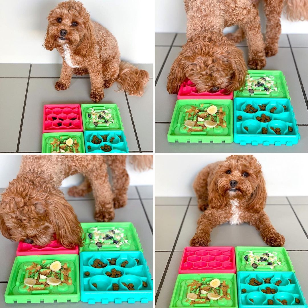 SlowFeedz turns mealtime into an engaging and rewarding experience your dog will love. Slowing them down while stimulating their mind.
